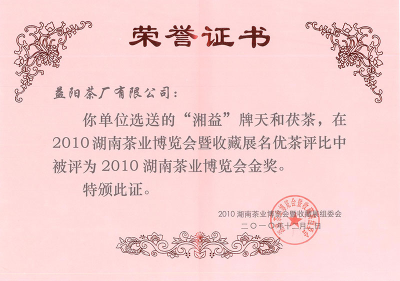 2010年湖南省茶業(yè)博覽會(huì)金獎(jiǎng)