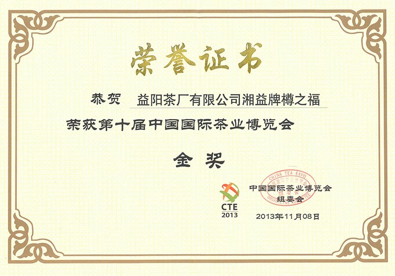 中國國際茶博會(huì)金獎(jiǎng)