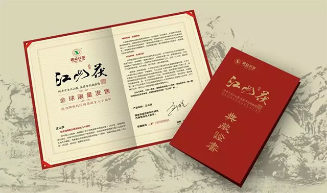 由國(guó)家非遺茯磚茶制作技藝代表性傳承人——?jiǎng)⑿右嬗H自監(jiān)督制作,每套均具有典藏證書,并有劉杏益大師親筆簽名,每套都標(biāo)有獨(dú)立典藏編號(hào)。全球限量發(fā)售,每片都擁有獨(dú)立的編號(hào),更彰顯此款茯茶的尊貴。