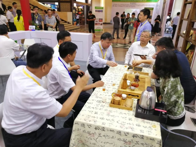 湘益茯茶榮獲湖南茶葉“千億產(chǎn)業(yè)十強(qiáng)企業(yè)”榮譽(yù)稱號,公司總經(jīng)理助理姚永軍先生上臺領(lǐng)獎。茶博會期間,湘益展位賓客滿朋,現(xiàn)場十分火爆。茯茶消食解膩、增強(qiáng)人體體質(zhì)等健康養(yǎng)身功效吸引了八方來客,賓客們駐足湘益展柜前,興趣滿滿地品飲著橙紅明亮、滋味醇和、菌香濃郁的湘益茯茶,并對湘益茯茶獨特的金花菌香及厚重的歷史文化底蘊(yùn)贊不絕口。