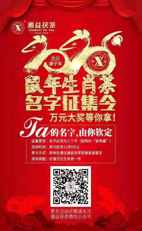 投稿被選為最終名稱的作者將獲得價(jià)值萬元的湘益茯茶生肖茶!