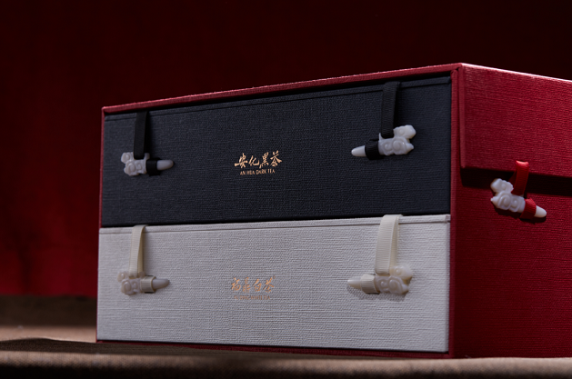 茶禮中一方磚(黑茶)、一圓餅(白茶),均為國(guó)家級(jí)非遺技藝代表性傳承人劉杏益(黑茶)、梅相靖(白茶)匠心之作,亦堪稱(chēng)安化黑茶、福鼎白茶兩大地理品牌的佳作!