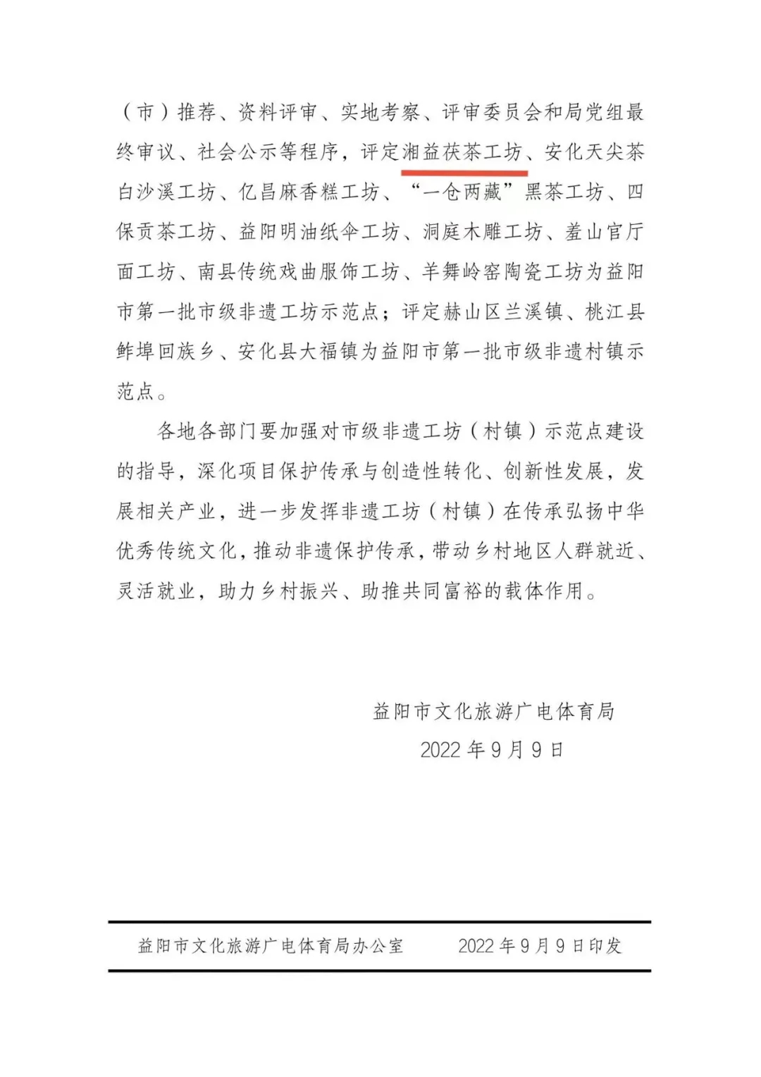 接下來,益陽茶廠有限公司將加強(qiáng)對湘益茯茶工坊示范點(diǎn)建設(shè),深化項(xiàng)目保護(hù)傳承與創(chuàng)造性轉(zhuǎn)化、創(chuàng)新性發(fā)展,發(fā)展相關(guān)產(chǎn)業(yè),進(jìn)一步發(fā)揮非遺工坊(村鎮(zhèn))在傳承弘揚(yáng)中華優(yōu)秀傳統(tǒng)文化,推動非遺保護(hù)傳承,帶動鄉(xiāng)村地區(qū)人群就近、靈活就業(yè),助力鄉(xiāng)村振興、助推共同富裕的載體作用。