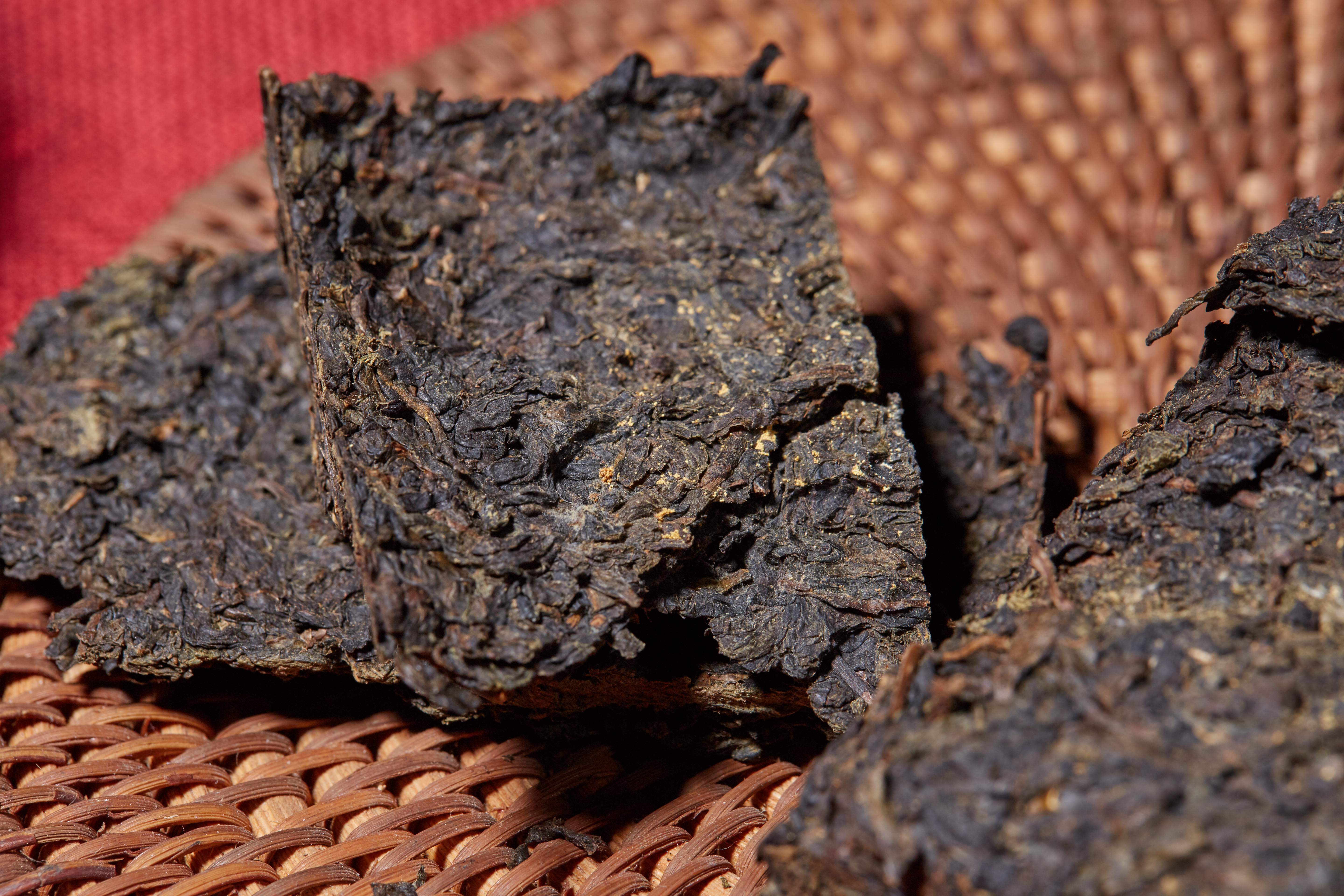 鮮葉再經(jīng)殺青、揉捏、渥堆等工藝環(huán)節(jié)初制成黑毛茶。條索緊結(jié)、較圓直、嫩度較好,色澤黑潤,從原料上保證了優(yōu)厚的物質(zhì)基礎。