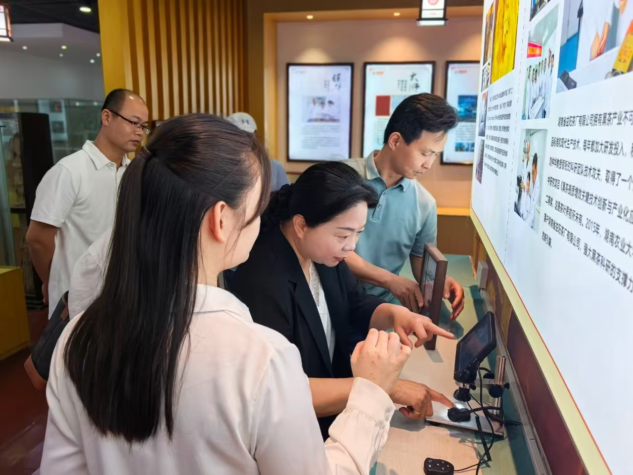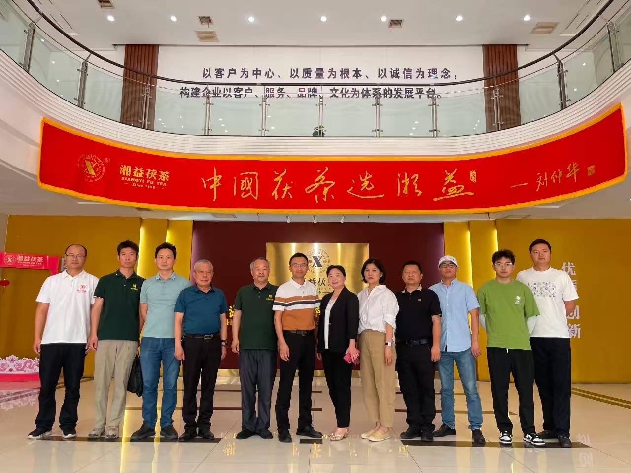 來訪嘉賓深入生產(chǎn)車間,實(shí)地參觀了篩分車間、壓制車間與金花酵庫。姚堅(jiān)主席全程陪同下,并憑借其深厚的行業(yè)知識(shí),深入講解從原料精選到茯磚茶“發(fā)花”等核心工藝要點(diǎn),讓來賓們對(duì)茯磚茶嚴(yán)苛的制作工序有了更清晰的認(rèn)識(shí)。在湘益茯茶博物館,來賓們通過詳實(shí)的文字、圖片以及歷史實(shí)物,感受茯磚茶制作技藝傳承數(shù)百年的深厚底蘊(yùn),深入了解益陽茶廠六十余載守護(hù)非遺技藝的堅(jiān)守與突破。