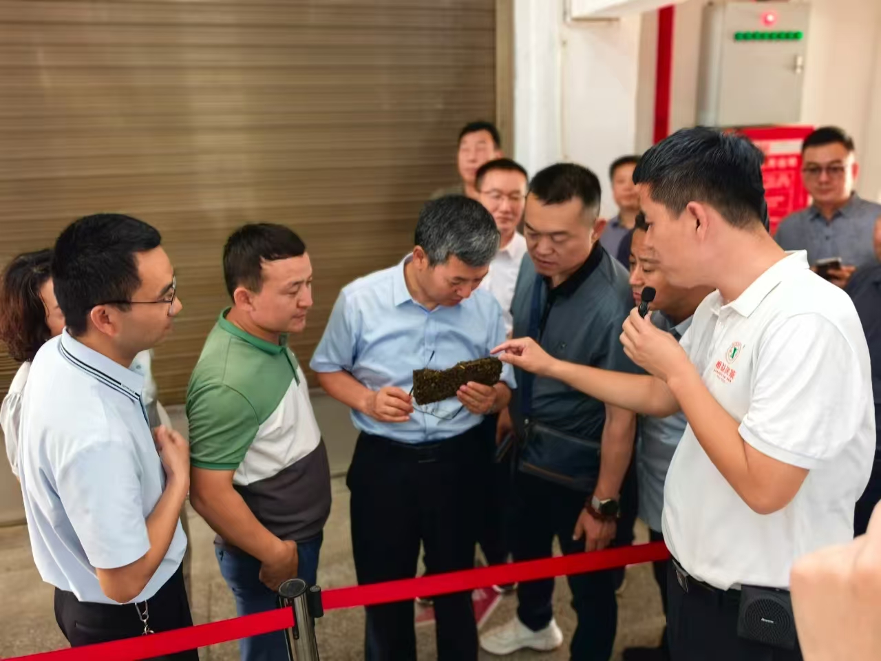 調(diào)研組實(shí)地參觀了益陽茶廠篩分車間、壓制車間及核心工藝區(qū)“金花酵庫”,并通過有關(guān)歷史文獻(xiàn)與實(shí)物展陳等,詳細(xì)了解了茯磚茶從原料篩選到發(fā)花干燥的工藝流程,了解了益陽茶廠自1958年建廠以來通過“一片茶守護(hù)邊疆”所展現(xiàn)的使命擔(dān)當(dāng),連續(xù)67年向新疆、青海、甘肅等地區(qū)無間斷調(diào)撥茯磚茶超60萬噸,依托萬噸級(jí)原料儲(chǔ)備和智能化生產(chǎn)線等,構(gòu)建起邊疆民生茶長(zhǎng)期穩(wěn)定供應(yīng)體系。