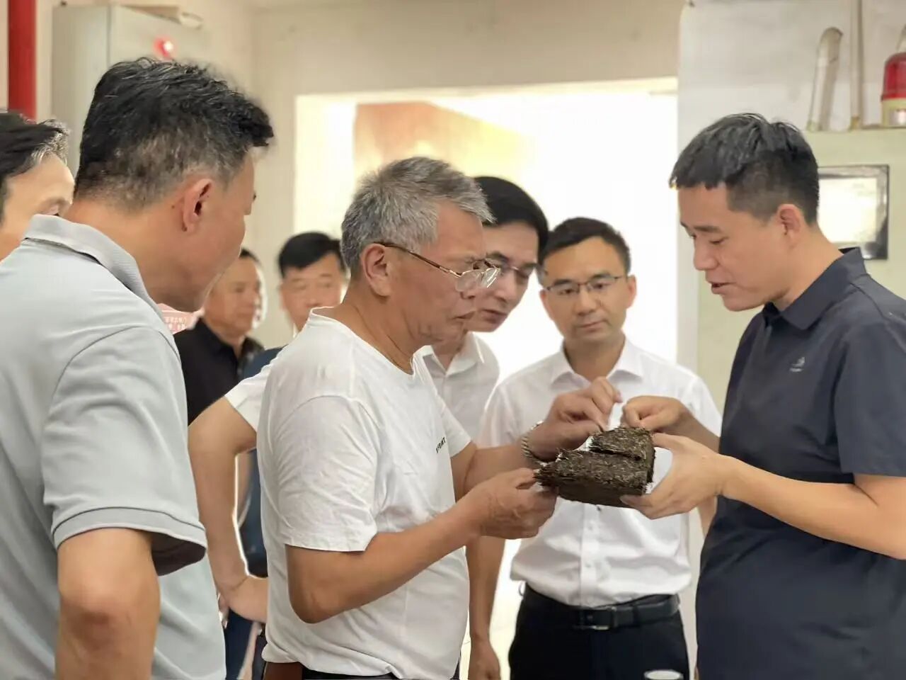 考察團深入?yún)⒂^公司篩分車間、壓制車間及金花酵庫,詳細了解茯磚茶的傳統(tǒng)制作技藝與現(xiàn)代生產(chǎn)工藝。在隨后舉行的座談會上,雙方就茶葉產(chǎn)業(yè)發(fā)展、品牌建設(shè)以及潛在合作機遇等進行了交流。