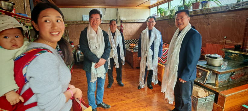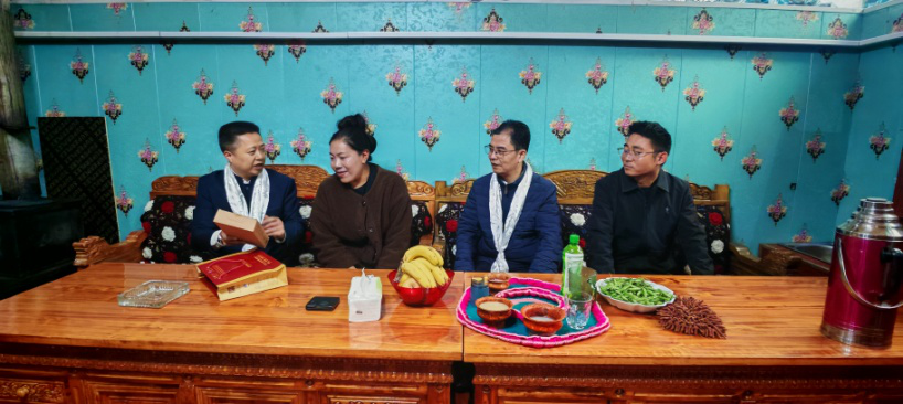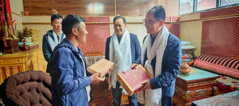 考察團一行隨即前往山南市隆子縣調(diào)研,與隆子縣委書記李寧、縣委常委、統(tǒng)戰(zhàn)部部長嘎瑪?shù)┰龅阮I(lǐng)導(dǎo)進行了會談。趙穎君一行在縣委常委、統(tǒng)戰(zhàn)部部長嘎瑪?shù)┰觥⒏辈块L索朗巴珠的陪同下,翻越了三座海拔超5000米山峰,深入隆子縣斗玉珞巴民族鄉(xiāng)、玉麥鄉(xiāng)、扎日鎮(zhèn)等鄉(xiāng)鎮(zhèn)及村,不僅學(xué)習(xí)了蔵區(qū)同胞的愛國主義思想、情懷與精神,而且考察了茶葉加工廠、了解藏區(qū)本地小眾茶的生產(chǎn)、區(qū)內(nèi)區(qū)外茶消費情況等,與此同時,還走進藏民同胞家中,代表益陽市委統(tǒng)戰(zhàn)部贈送“湘益”茯茶、表達了益陽人民的熱情厚愛與對藏區(qū)人民的美好祝福。